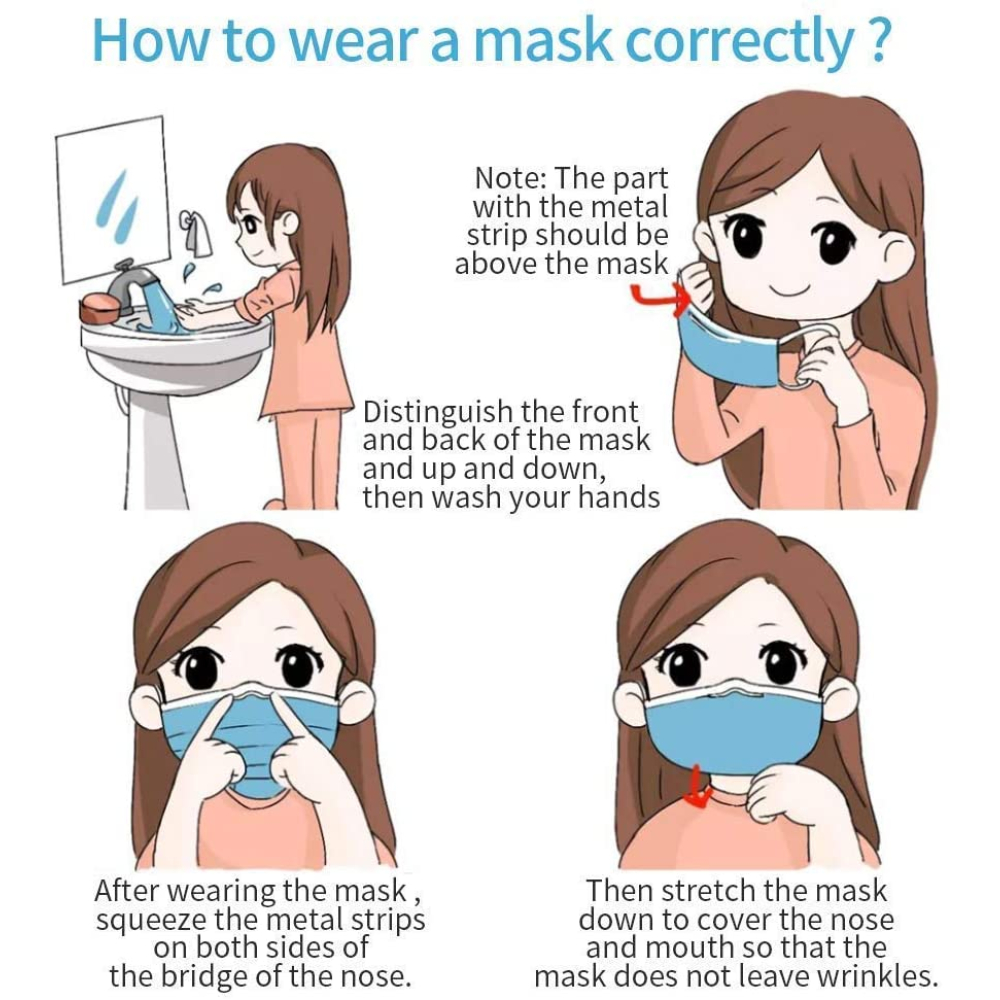 50 stuks wegwerp gezichtsmasker 3-laags mondbescherming stofbescherming infectiebescherming beschermmasker adembeschermingsmasker met stiekjes beschermt tegen vuil (blauw)